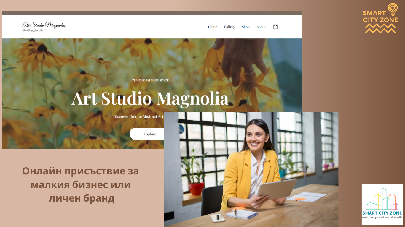 Специално разработваме сайтове за малкия бизнес, личен бранд, CV или портфолио: получаваш професионален сайт, който показва услугите и продуктите ти с доверие и привлича клиенти онлайн. За 5 дни ще си с онлайн присъствие, без да отделяш часове за технически детайли.